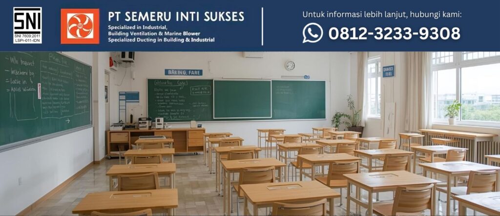 - Pilih kapasitas sesuai volume kelas: Sesuaikan debit udara (CFM) dengan luas ruangan dan jumlah siswa. Kelas padat membutuhkan laju alir lebih tinggi.